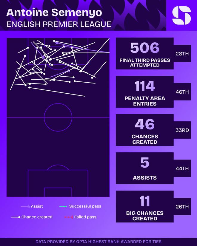 虽然在创造机会方面仍有提升空间,但这绝非他的短板。如果能够加盟一支拥有更强终结能力的球队,他的数据很可能会更加亮眼。同时他也是一位高效的终结者,能够用双脚从不同位置完成破门。无论是低射近角、巧妙的推射、远程重炮还是冷静的单刀处理,他在禁区内外展现出的进攻嗅觉都是其重要武器,当然这些技术仍有精进的空间。